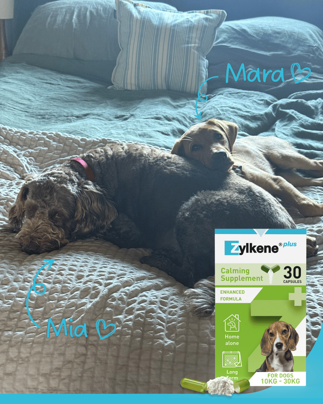 After starting her on Zylkene🩵, we noticed a positive change within just a few days. She became calmer, more relaxed, and seemed much happier in herself. The real breakthrough was when she began to show interest in the puppy — even letting her lie next to her and rest her head on her.